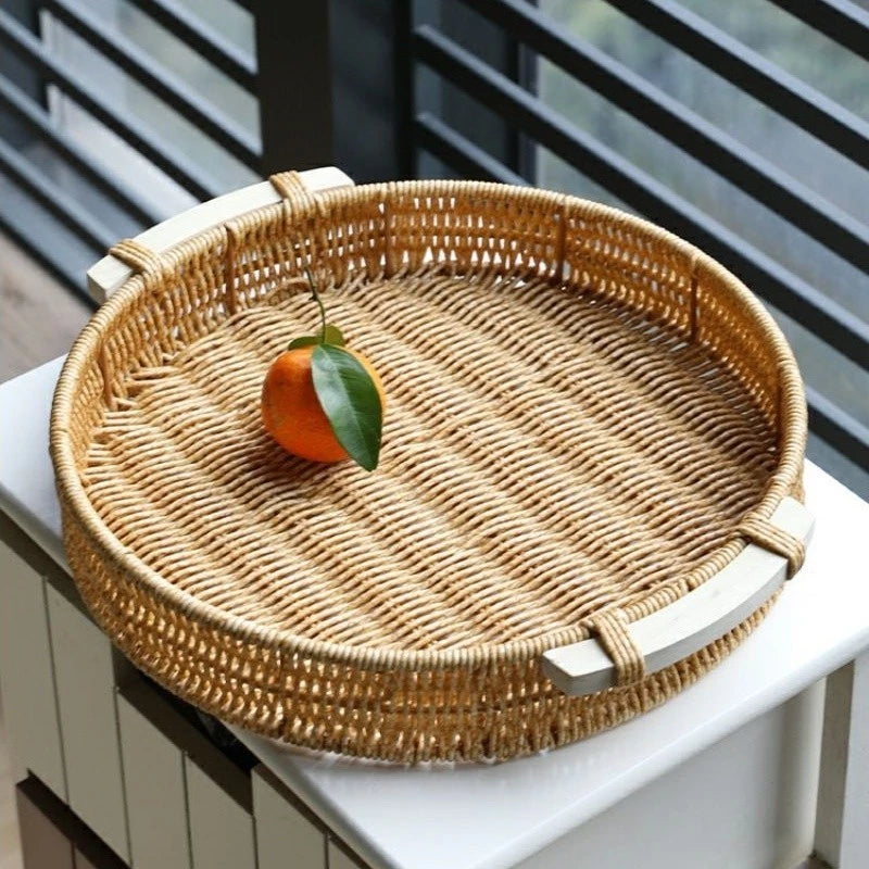 A Bandeja Organizadora Redonda em Rattan é perfeita para transformar momentos simples em experiências acolhedoras. Ideal para café, petiscos, frios e doces, ela organiza e valoriza a apresentação com um toque natural que combina com qualquer ambiente da casa.