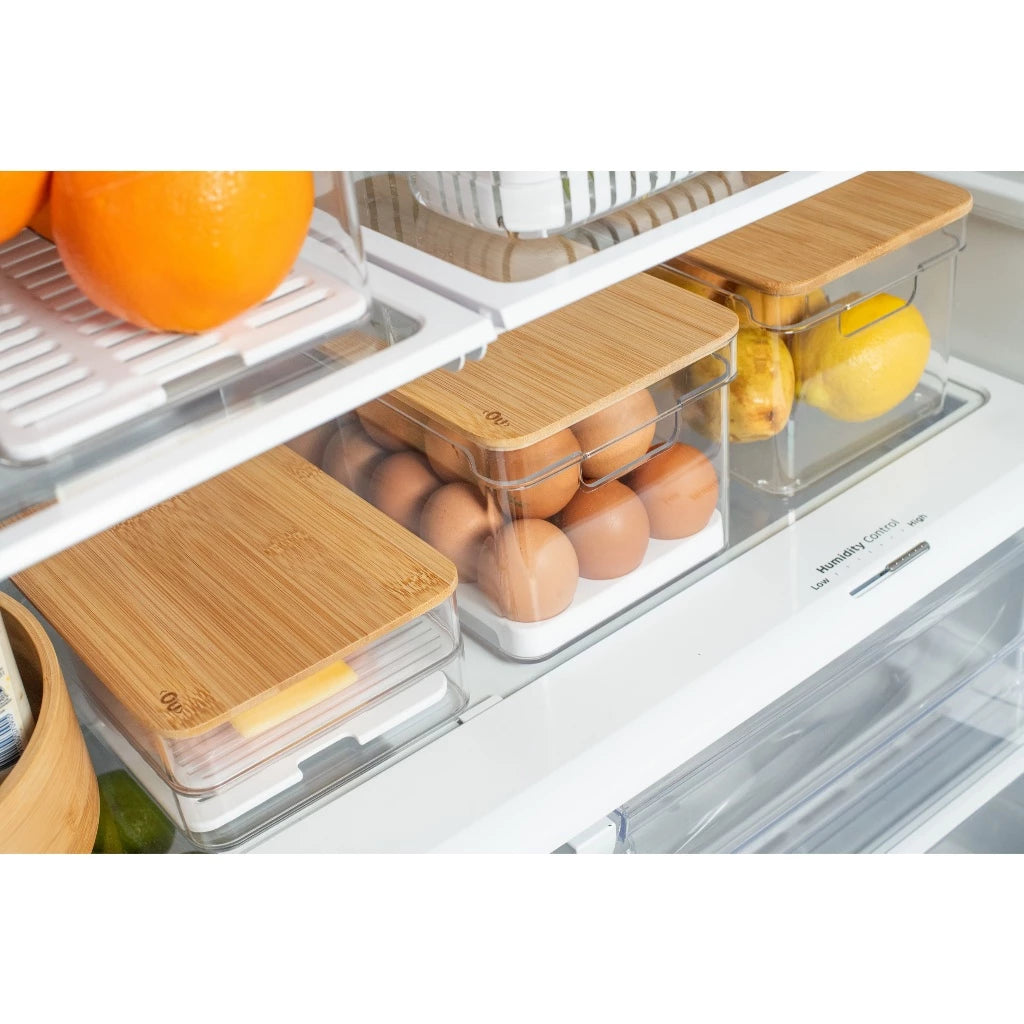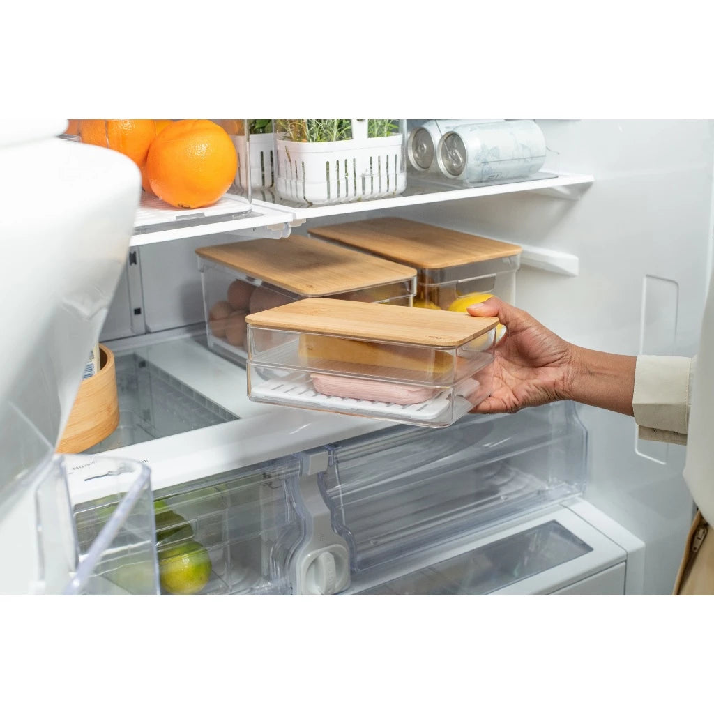 O Porta Frios Duplo Clear com Tampa em Bambu foi criado para conservar queijo, presunto e frios com máxima eficiência e elegância. A vedação segura reduz a troca de odores, evita ressecamento e mantém sabor e textura por mais tempo — mais frescor, menos desperdício e uma geladeira visualmente organizada.